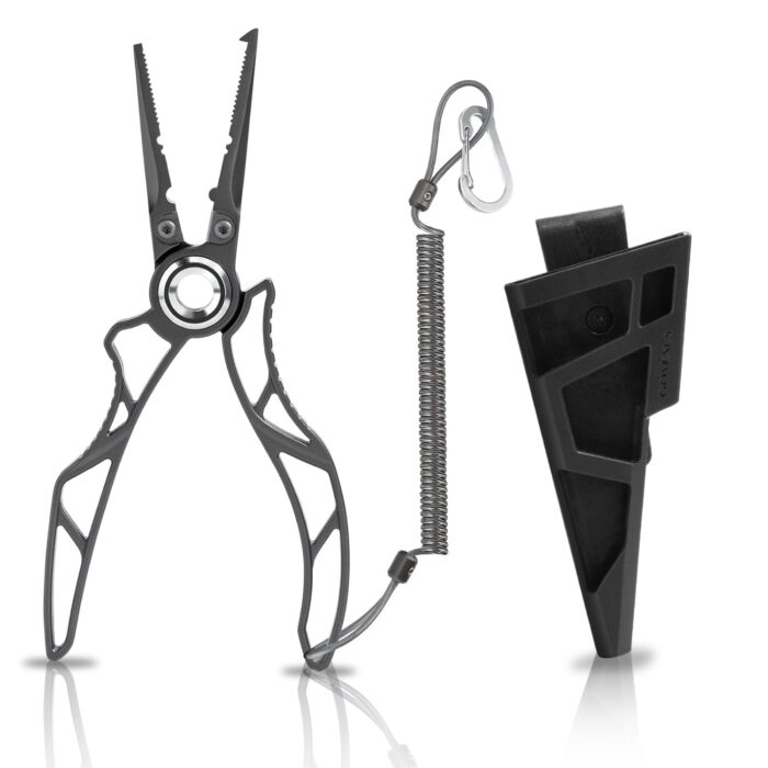 Aço Inoxidável Premium: Fabricado em aço inoxidável 17-4PH de alta resistência com revestimento de titânio, este alicate oferece durabilidade excepcional e resistência à corrosão, garantindo desempenho de longa duração tanto em água doce quanto em água salgada.