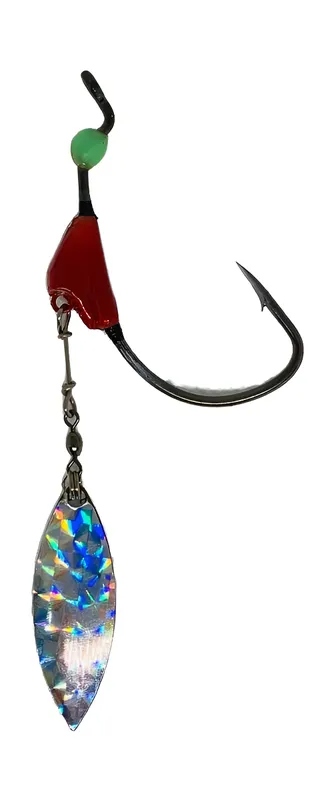 O anzol possui uma lâmina que além de emitir muita vibração imita pequenos peixes seguindo a isca principal. Ele serve para pescarias de meia água até o fundo.
