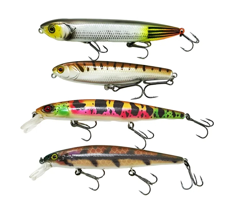 São quatro artificiais consagradas e de ação espetacular que receberam pinturas especiais para simular algumas das principais presas do tucunaré-açu.