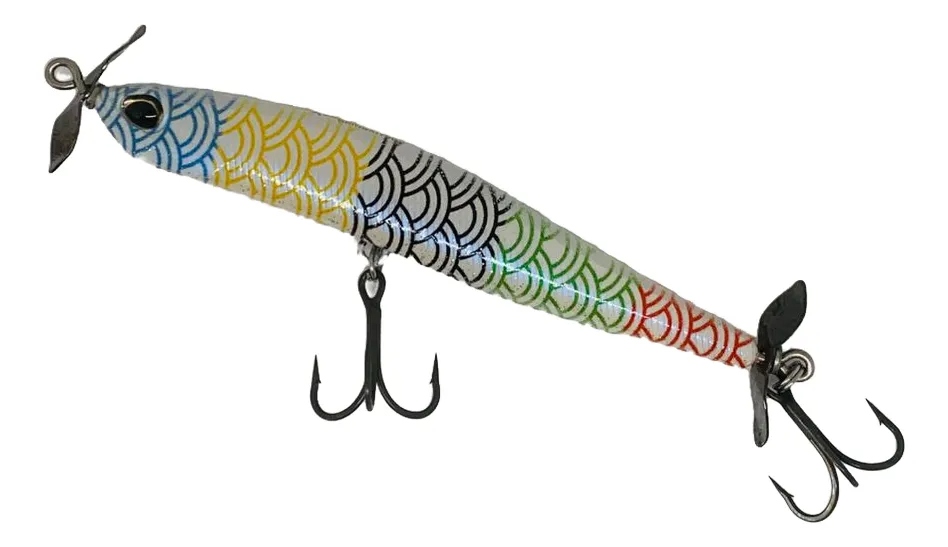 Designer, o Sr. Adachi é conhecido por seu trabalho impecável com as versões do Spinbait80. O Spinbait 90 tem um aumento na área da linha lateral mais alta e plana para aumentar o efeito de lampejo usado na ação de rolagem da marca registrada da isca. A estrutura estrutural interna do 90 foi projetada para sustentar os golpes esmagadores de peixes predadores maiores.