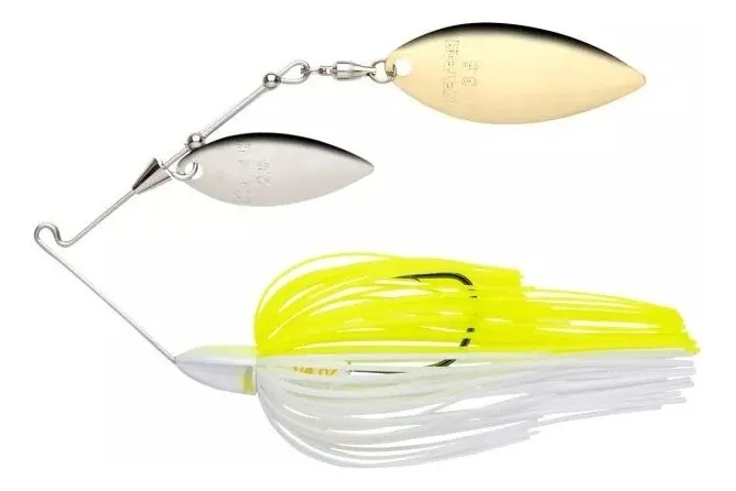 As spinnerbaits Baby Tee-Bone Double Willow recebem esse nome devido ao design especial da cabeça em formato de T e são equipadas com 2 hastes em formato de folha de salgueiro, o que aumenta a pressão debaixo d'água.