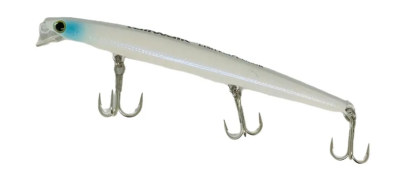 A isca SEA FINGER MINNOW 113, conhecida por sua eficácia na pesca de predadores marinhos, como robalos, xaréus e garoupas. Ela possui um corpo alongado e fino, com 113mm de comprimento e um peso de aproximadamente 6.8g a 7g.