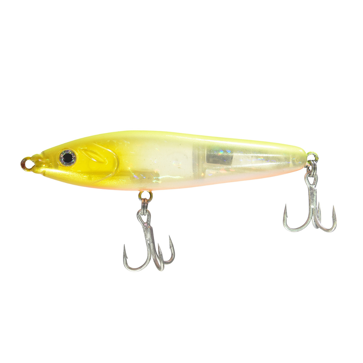 Isca artificial de superfície com o pitão de arrasto na extremidade superior e lastreada na parte inferior, a sua posição na água é na vertical (em pé) com aproximadamente metade do corpo para fora d'água quando tracionada com toques de ponta de vara, a ação é de um peixe ferido agonizando na superfície.