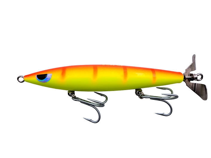 A Devassa é fabricada em madeira leve e resistente, possui pitões e hélice em aço inox reforçado, além de garatéias 6X na cor vermelha. O diferencial está no som irresistível produzido por seu trabalho, que é mais leve e fácil de realizar devido ao formato SLIM do corpo, e ainda facilita os longos arremessos.