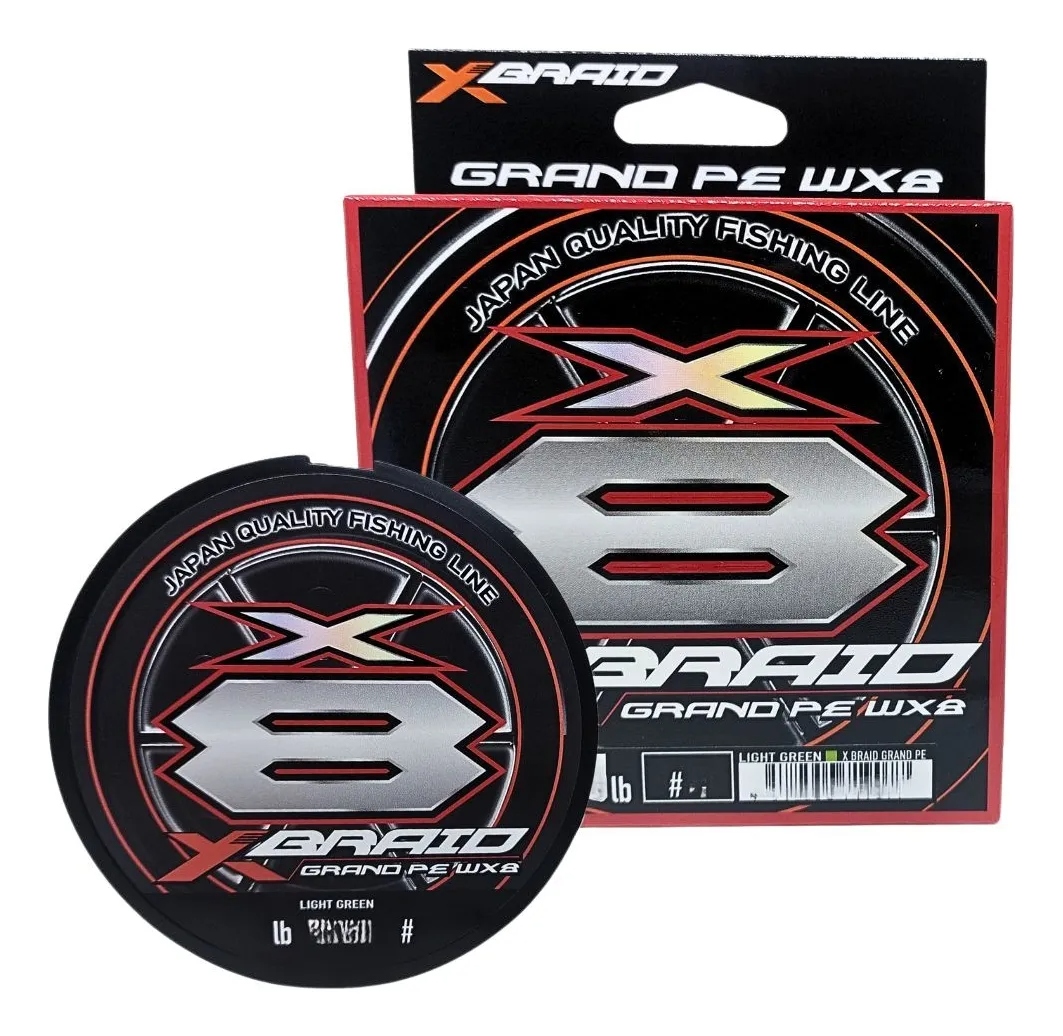 A XBraid Grand PE WX8 é uma nova linha de 8 fios de polietileno de alta qualidade, classificado como Grand PE e utiliza o método WX, que entrelaça os fios firmemente na direção da fibra, aumentando a sua uniformidade e resistência.