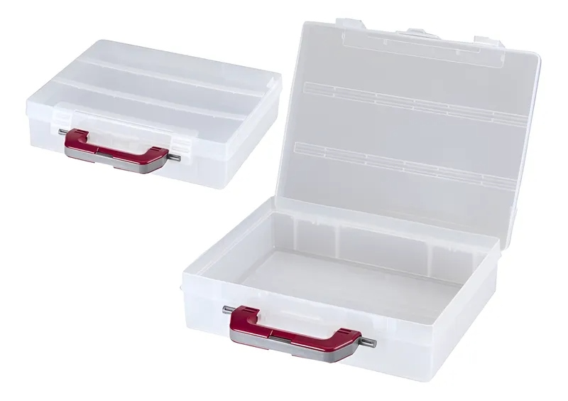 Essa maleta é ideal para a organização de acessórios volumosos, pois possui um fundo de alta capacidade de armazenamento.