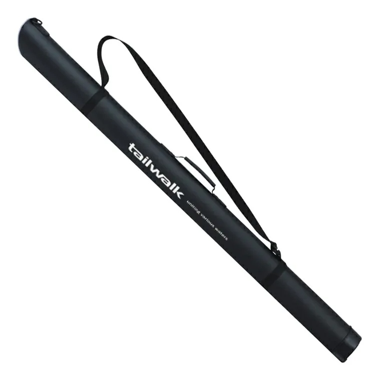 Estojo para varas semi-rígido. A alça de ombro facilita o transporte. A parte inferior é protegida por um recipiente plástico. É essencial para proteger as varas durante as viagens de pesca.