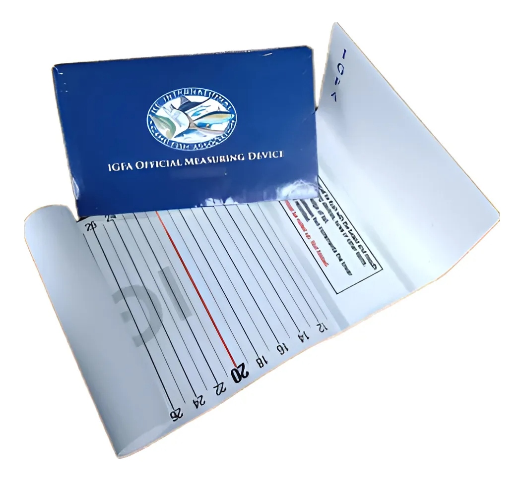 O peixe deve tocar a extremidade da régua IGFA com a boca fechada e a boca deve estar livre de iscas e anzóis.